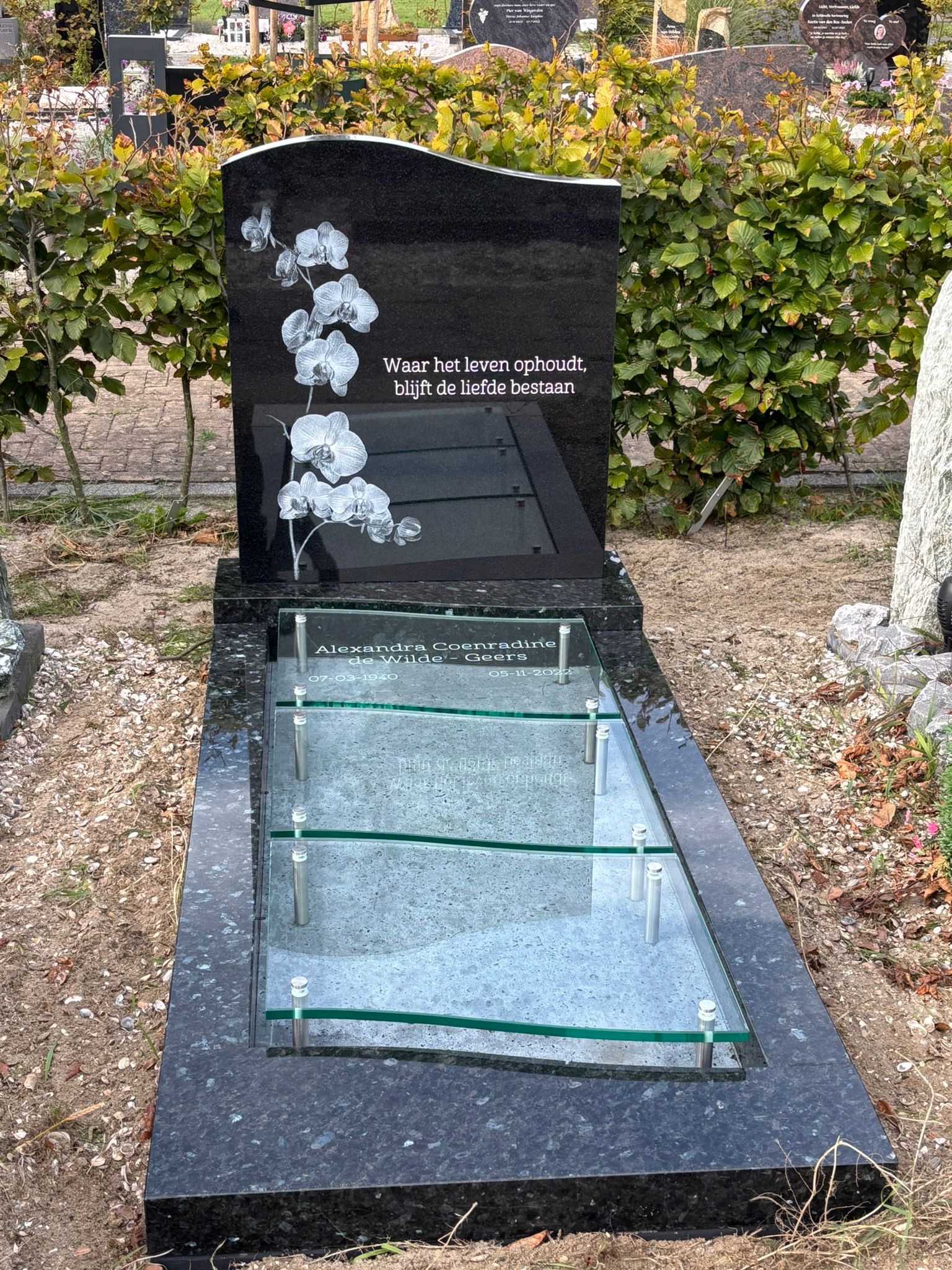 Het kiezen van een glasmonument is een zorgvuldig proces. Het monument symboliseert de laatste rustplaats en houdt de herinnering aan uw dierbare levend. Of het nu een elegant glasmonument is of een combinatie van glas en graniet, het vertelt op unieke wijze het verhaal van degene die u hebt verloren. Wij begrijpen dat het maken van de juiste keuze vaak lastig kan zijn. Daarom begeleiden wij u op een persoonlijke en betrokken manier door dit proces. Of u nu kiest voor een van onze ontwerpen of een op maat gemaakte oplossing, elk glasmonument wordt met de grootste zorg en aandacht vervaardigd.